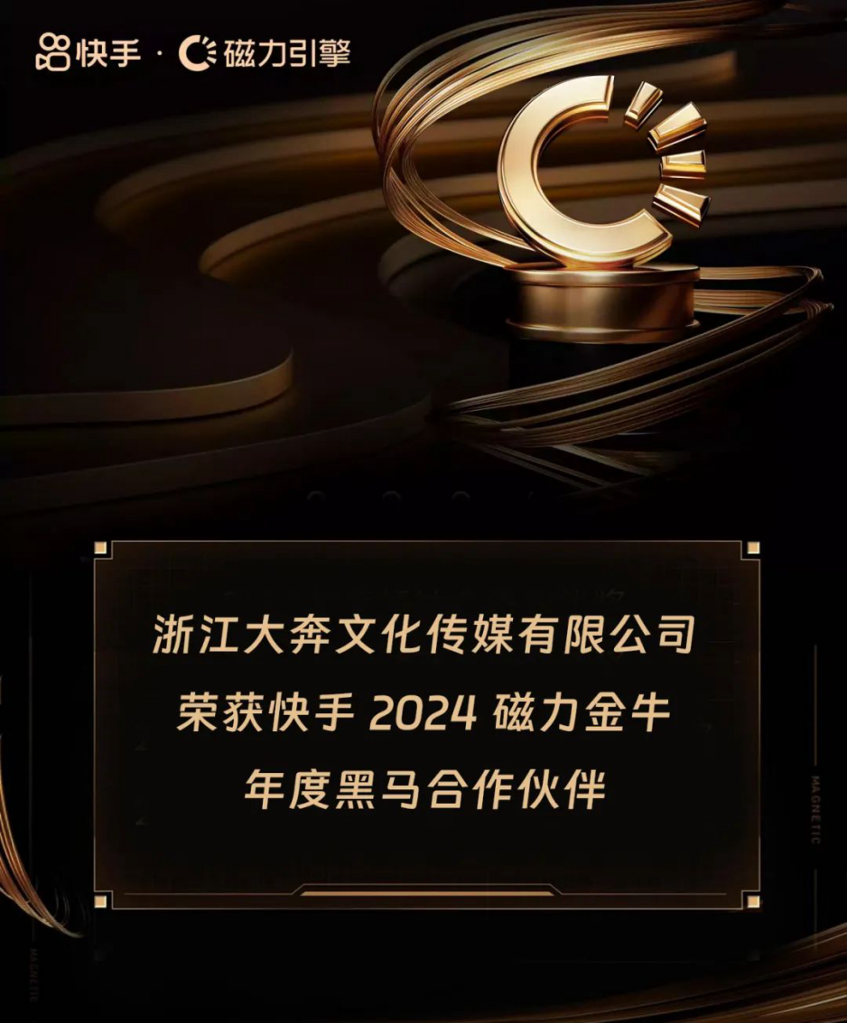 牧马集团成员企业-大奔文化荣获快手2024磁力金牛【年度黑马合作伙伴】奖项!